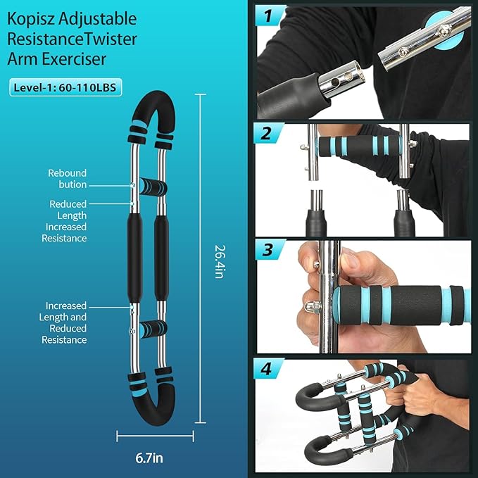 - Durable Build with Ergonomic Comfort Kopisz Hand Grip Exerciser (a top twister arm trainer) features high-grade steel springs and a reinforced frame, enduring daily intense use without losing elasticity. Non-slip foam handles fit all hand sizes, reducing fatigue/slips—even when sweaty. Its smooth, pinch-free design protects skin and joints, a safe long-term choice for arm/chest trainer users.