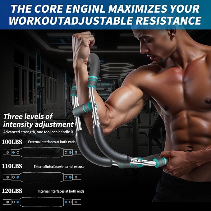 - [Adjustable resistance design] Two-position two-level adjustment mode, three-speed adjustable strength, 100-120 lbs adjustable resistance chest exerciser for men, suitable for users of different fitness levels, from beginners to professional athletes, you can customize the training intensity