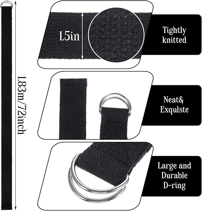 - 【Complete Fitness Set】This 12-pack includes black 6 ft yoga straps with D-ring buckles. Sufficient for group classes or personal use, the cotton exercise bands support consistent gym, studio, or home flexibility training routines