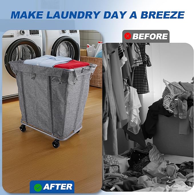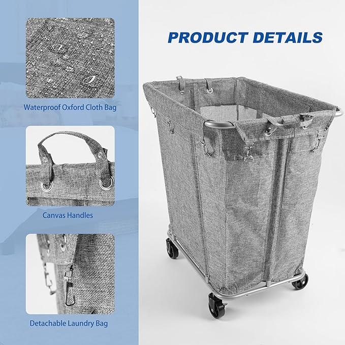 - 【Durable & Waterproof】: Made with thick Oxford cloth lining, this commercial-grade laundry cart is wear-resistant, waterproof, and easy to clean. A round buckle secures the bag firmly to the frame, so it stays upright even when fully loaded.