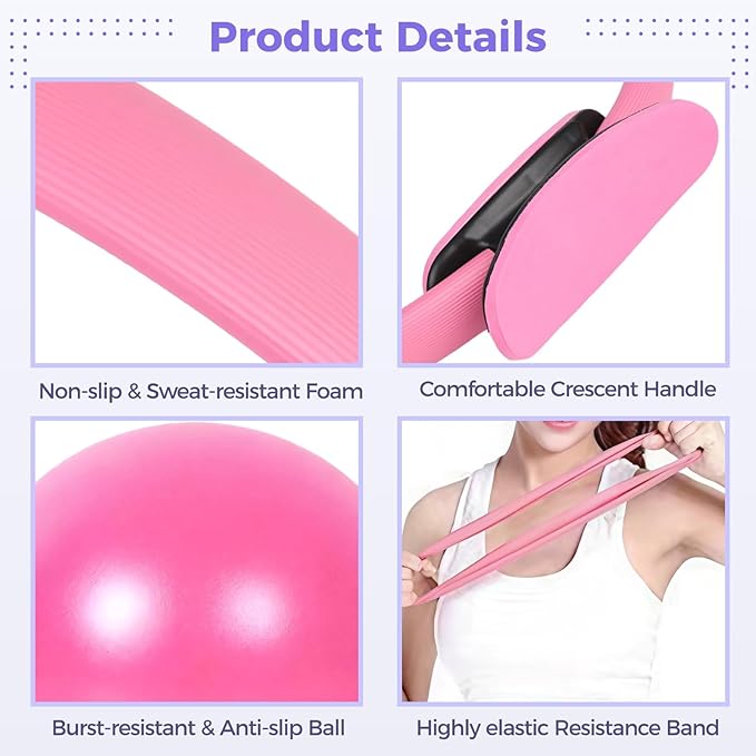 - Comprehensive Pilates Set: Includes two Pilates rings, two balance balls, three resistance bands, one exercise band, and a handy pump; great for full body sculpting, core strength, and flexibility at home or in the studio