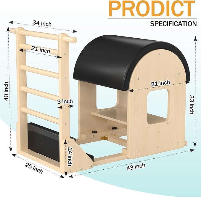 Pilates Ladder Barrel, Wooden Spine Corrector Pilates Machine for Home Workout, Pilates Arc for Balance, Core Strengthening and Stretching-9T2pw9