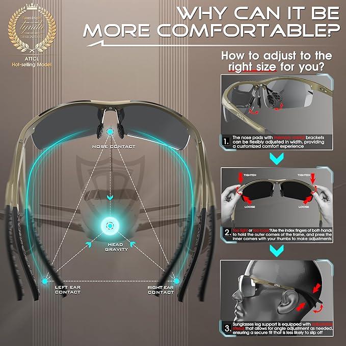 • Fur description : Why choose ATTCL? Established in 2013, ATTCL is a U.S. sunglasses brand with registration number 4875622. Designer sunglasses are expensive, while lower-priced ones lack quality. Today's market demands mid-priced sunglasses with high-end performance, and that's precisely why ATTCL was created.