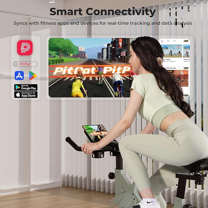 - 【Smart PitPat App Connectivity】Workout bike can Sync with the PitPat app to access personalized training plans, real-time progress tracking, and free professional courses. Stay motivated and transform your home workouts into engaging, goal-driven sessions