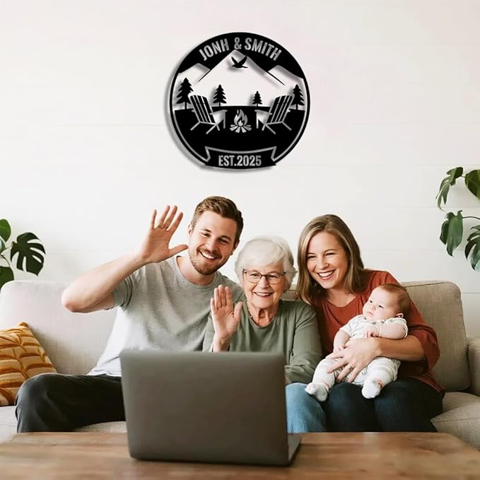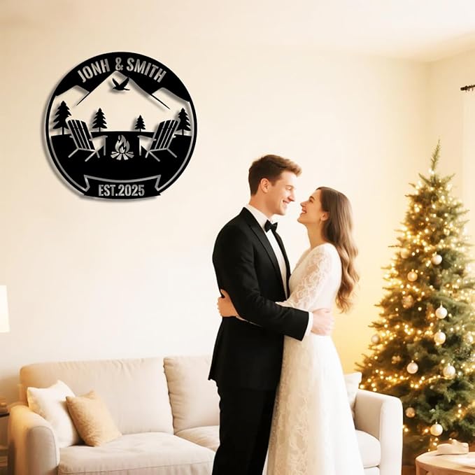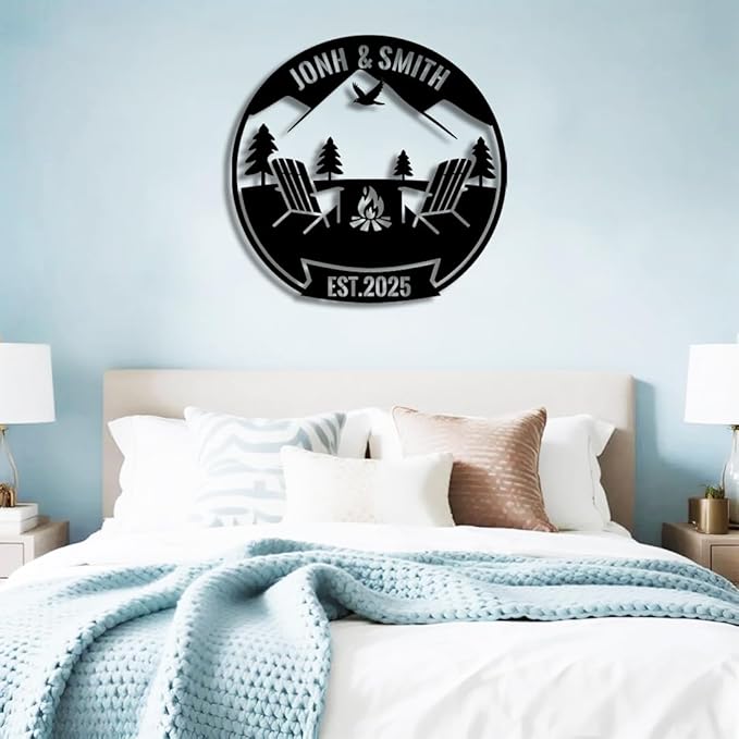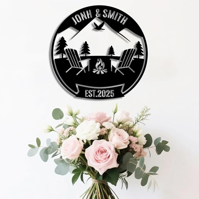 Personalized Campfire Metal Name Sign | Custom Camping Metal Signs | Family Wall Art & Split Letter Name | Wedding Gift & Anniversary | Indoor Decor Gift for Women, Men, Wife, Parents, Couple