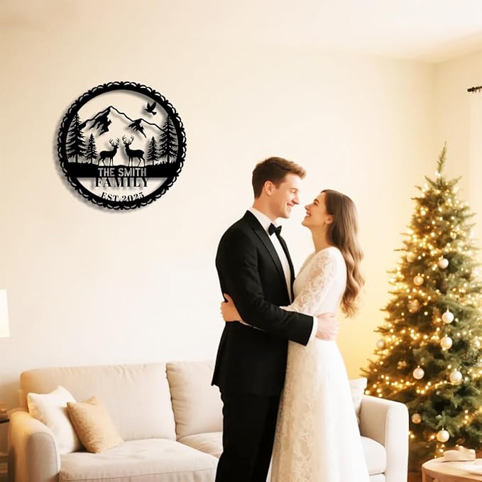 Personalized Forest Deer Metal Name Sign | Custom Metal Signs | Family Wall Art & Split Letter Name | Wedding Gift & Anniversary | Indoor Decor Gift for Women, Men, Wife, Parents, Couple