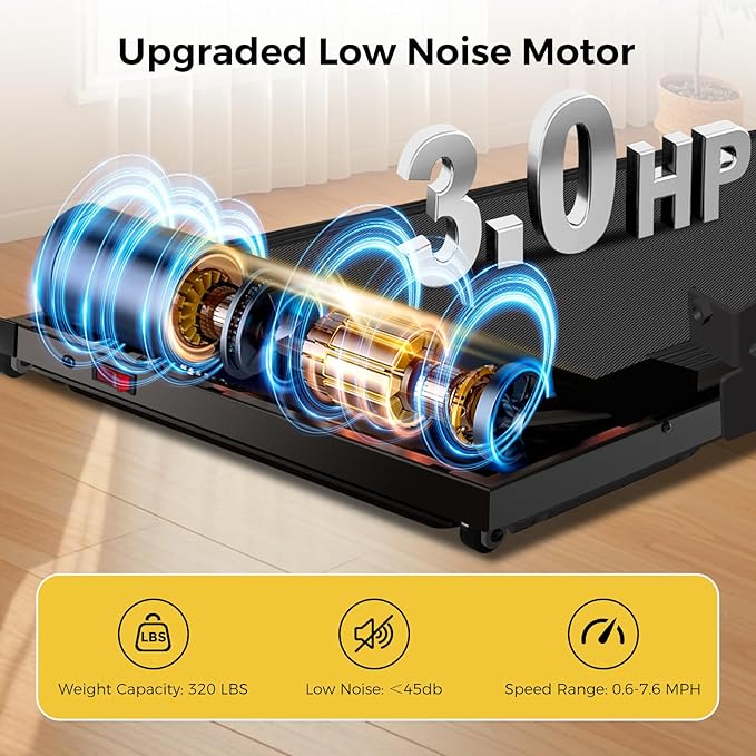 - 【3.0HP Ultra-Quiet Running & 320 lbs Capacity】Powered by a robust 3.0HP silent running, this walking pad treadmill operates whisper-quiet for home use. Its heavy-duty frame supports up to 320 lbs, paired with 8 silicone shock absorbers and dual rubber layers to reduce joint strain—ideal for treadmills for home small spaces