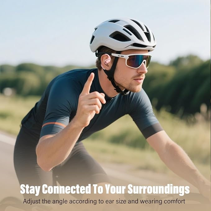 - Maintain Situational Awareness and Safety: Our open ear earbuds are designed to sit outside your ears, allowing you to stay aware of your surroundings at all times. Whether you're running or cycling outdoors, you can enjoy your music while still hearing approaching cars or other potential hazards, helping you stay safe throughout the day.