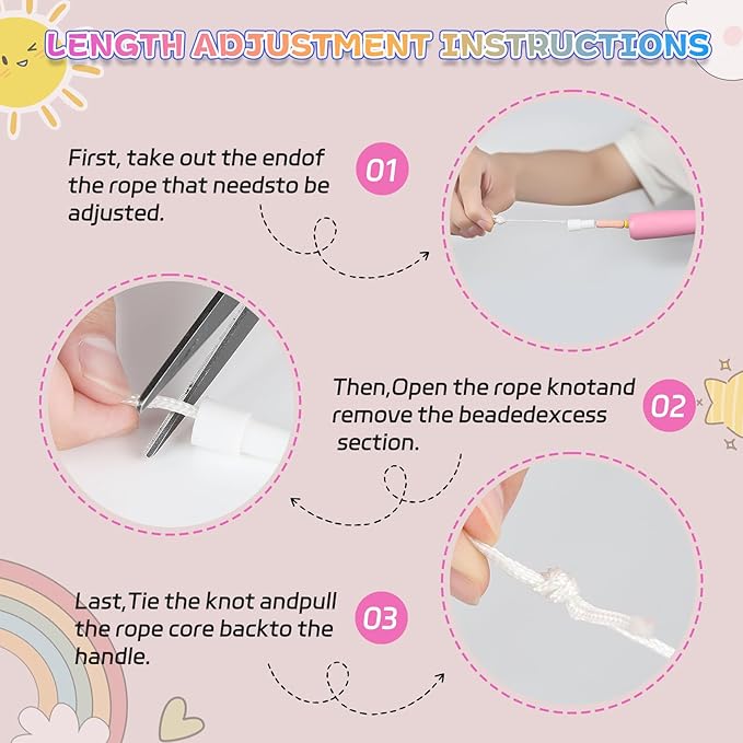 - 👧【Adjustable Rope】The length can be adjusted according to your kid's height (suitable for aged 3-12), re-knot and cut off the tail with scissors. Small and human ergonomic design wooden handle designed for the size of children's hands, easy to hold and keep