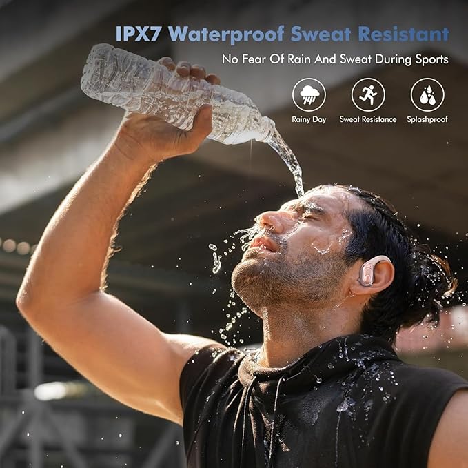 - Ergonomic Sports Design: The sports headphones features ear hooks made of an innovative TPE (elastic) material, the ultra-light and ergonomic design allows you to wear them for a long time without feeling uncomfortable. Try the three tip sizes to get snug in ear headphones fit and create a perfect seal for crystal clear sound. The wireless earbuds bluetooth are waterproof with an IP7 nano-coating to protect them when sweating or getting wet