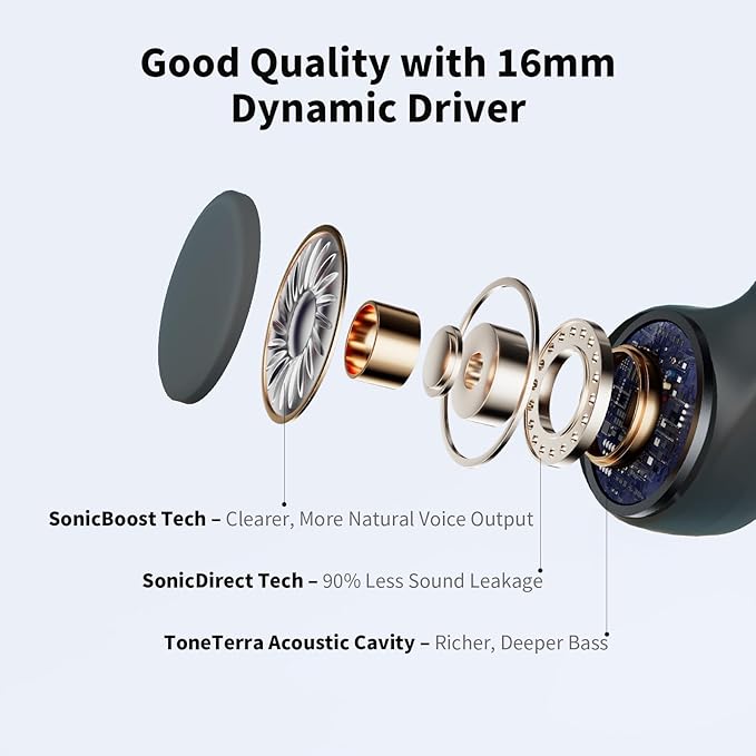 - Enhanced Audio:Featuring large 16mm dynamic drivers, bluetooth headphones deliver an expansive soundstage with deep, resonant bass and crystal-clear highs. Advanced driver technology ensures every note and detail is faithfully reproduced, providing immersive audio whether you're listening to music, podcasts, or taking calls. Experience enhances clarity and balanced sound across all frequencies, making your listening experience richer and more enjoyable in any environment.