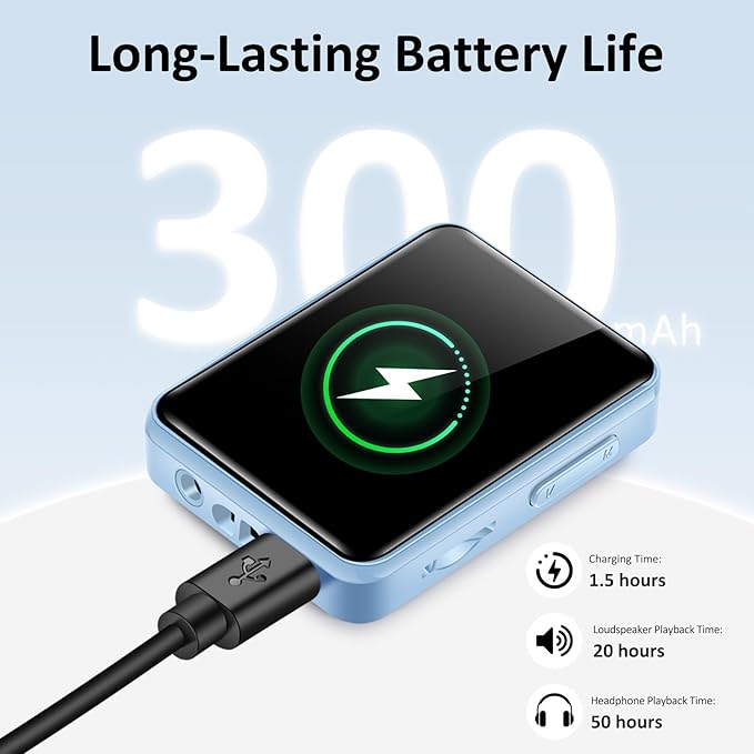 - 【Long-lasting battery life】 Built-in large-capacity battery, it can be used for a long time on a single charge, only 1.5 hours to fully charge, 20 hours with headphones and 4 hours with speakers. Say goodbye to the worry of mobile phone power consumption and focus on enjoying pure music time
