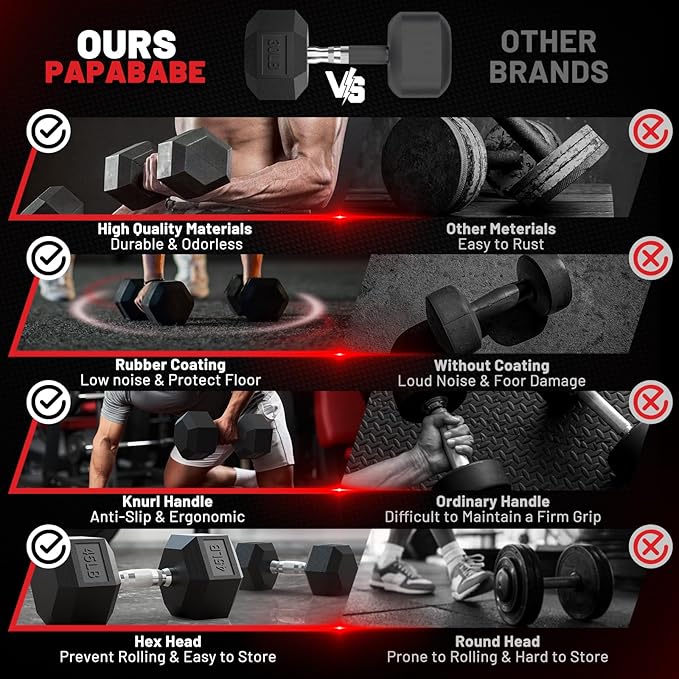 - Durable & Protective Design: Made of cast iron with chrome-plated handles and rubber-coated, these dumbbells resist rust, protect floors, and reduce noise during workouts. The durable rubber coating ensures long-lasting use.