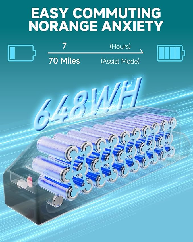 - ✅ 48V 13.5AH BATTERY: 648Wh Large Capacity battery let it become a veritable long range ebike, allowing you to ride up to 40 miles per charge. Charging time is about 5-7 hours,the battery is removable and can be charged indoors or outdoors.