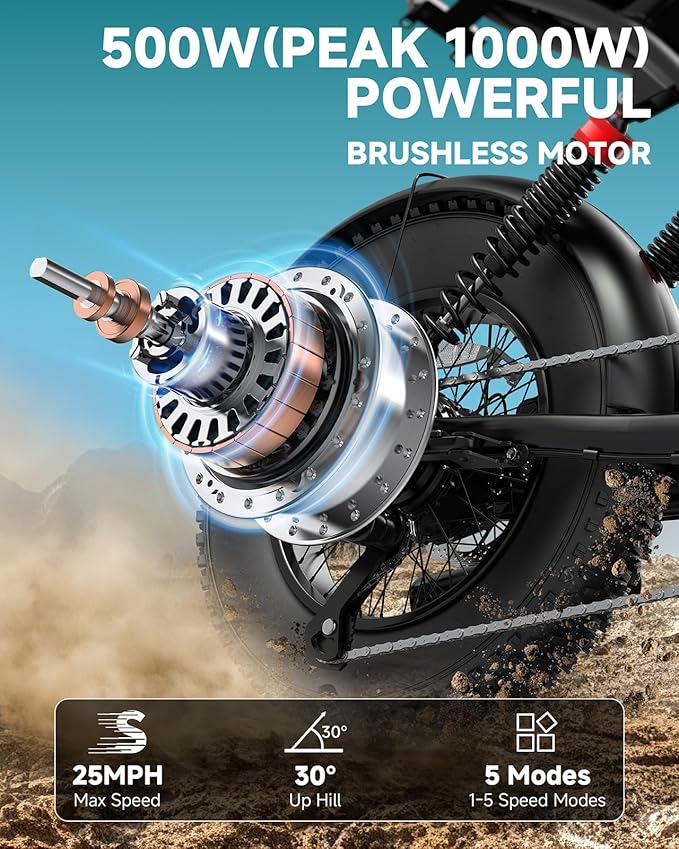 - ✅ 500W MOTOR: Qlaway 500w ebike with copper wire winding brushless motor, peak 1000W, provides a top speed of 25MPH,climbing slope 30 degrees.80 Nm of torque provides strong power for e dirt bike.7-speed gears + famous brand derailleur, smooth speed switching during riding, giving you a comfortable and smooth riding experience