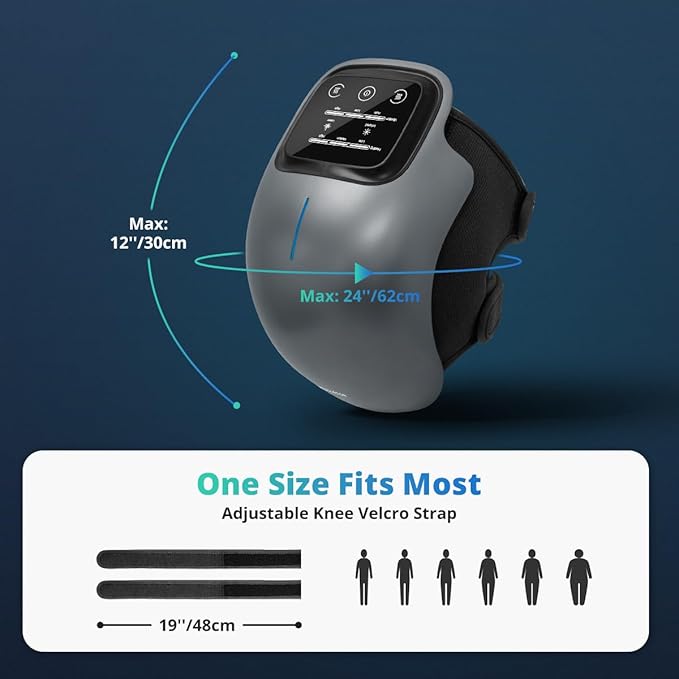 - [Adjustable Straps & Ergonomic Fit] The massager comes with a 19-inch extension strap, and djustable hook-and-loop straps let the massager wrap and contour around your knee for a secure, comfortable fit that stays in place and offers gentle support. And fit most knee sizes