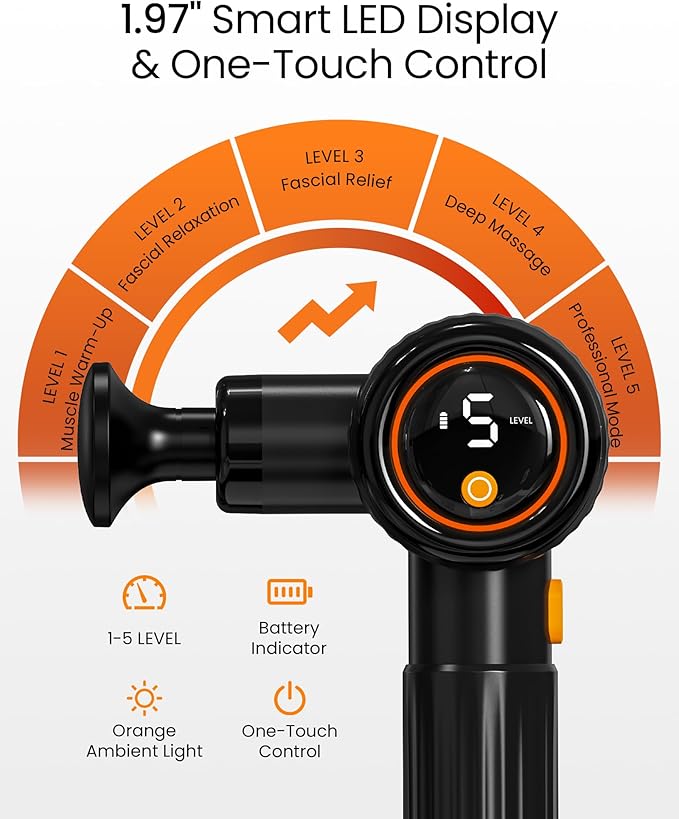 - 【6 Professional Attachments & Portable Carry Case】The muscle massage gun includes 6 specialized massage heads for full-body recovery and comes with a premium portable carry case for comprehensive on-the-go recovery.
