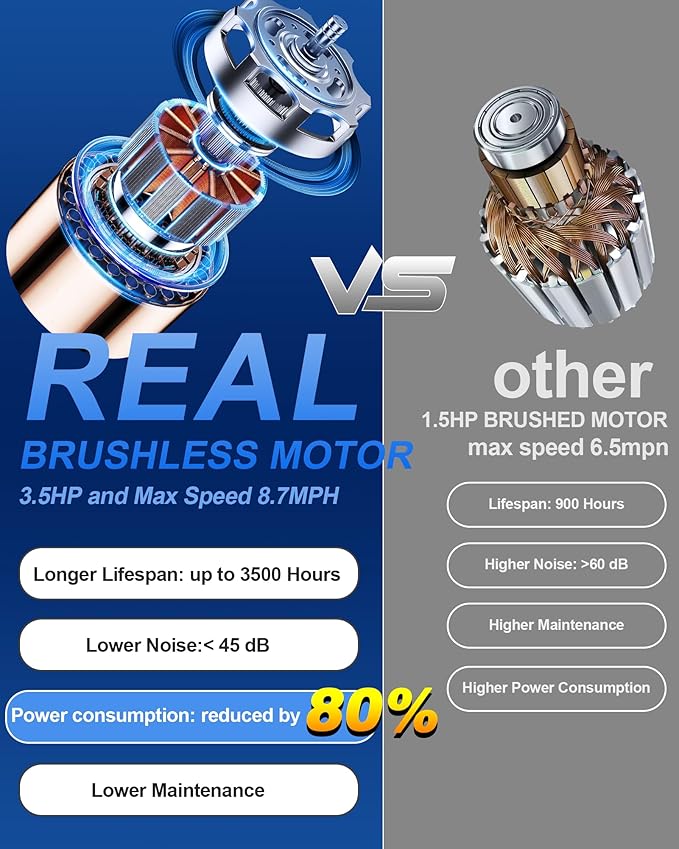 - 【3.5HP Real Brushless Motor】3.5 HP pro motor supports a maximum speed of 8.7 miles/hour to meet your different exercise needs, such as slow walking and relaxation during work, daily jogging fitness, professional running training, and (15% slope) climbing experience