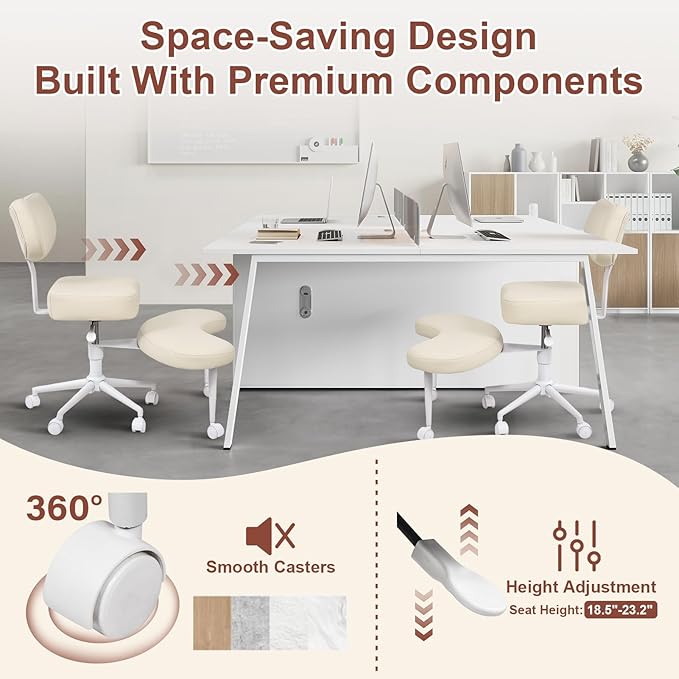 Meditation Chair Cross Legged ADHD Office Chair for Adults with Wheels Ergonomic Back Support and Leg Rest for Multi Position Criss Cross Sitting Kneeling and Yoga Height Adjustable, Leather Style