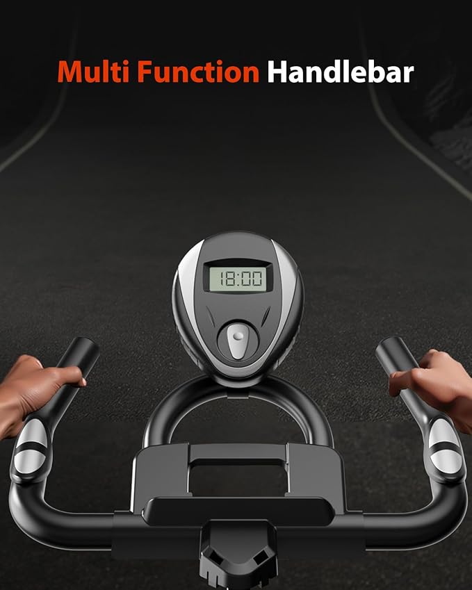 - User Friendly LCD Monitor with Tablet Holder: The practical LCD fitness display on our spin bike clearly tracks time, speed, distance, calories, and total mileage. A dedicated tablet holder is conveniently positioned for you to safely place your device, enjoy streaming workouts, watching videos, or listening to music while you ride. Enhance your exercise with both clarity and entertainment